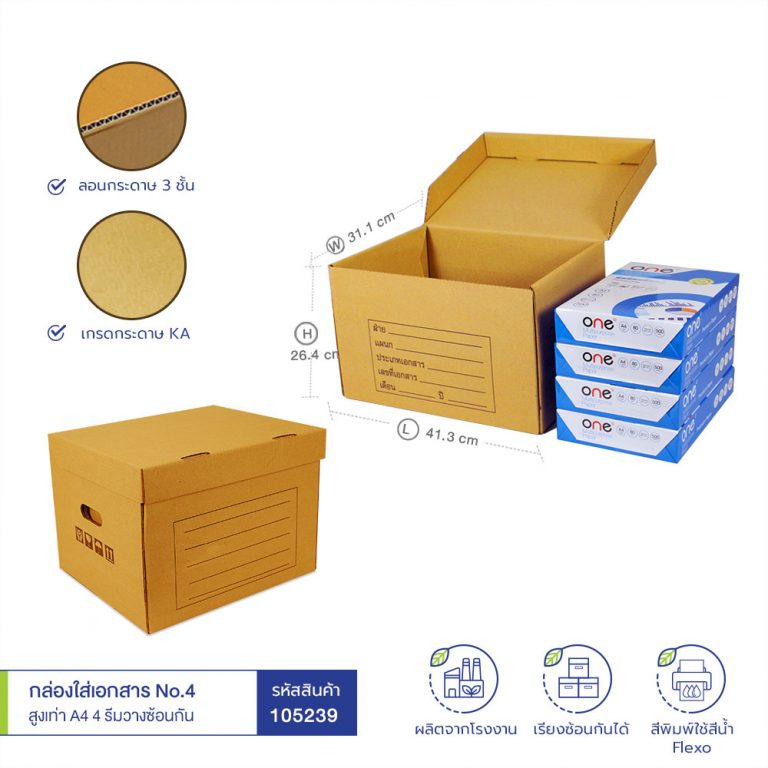 กล่องใส่เอกสาร No.4 สูงเท่า A4 4 รีมวางซ้อนกัน